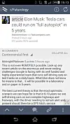 Att förklara Reddit är ungefär lika enkelt som att förklara sajtens fascination för bacon. ”Internets framsida” fungerar som lika delar kaotiskt forum och redaktörslös nyhetssajt, och av någon anledning har den precis rätt mängd kaos för att faktiskt fungera. Nackdelen är att det för nya besökare framstår som just ett oorganiserat kaos och det återspeglas så klart även i Bacon Reader. Här ligger större fokus på diskussionen kring de olika länkarna än på länkarna i sig, vilket är ett medvetet val även om vi gärna hade sett bättre uppvisning av förstainlägget också. Men appen gör ändå ett bra jobb med att hålla ihop det organiserade kaos som utgör Reddit.