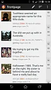 Här handlar det i första hand om att visa upp det som postas på Reddit. Ofta handlar det om att poster som helt enkelt inte gör sig i Flows visningsläge sorteras bort eller nerprioriteras till förmån för bilder och videoklipp. Å andra sidan gör den visningsläget betydligt bättre än många andra, med en riktigt vettig videospelare och ett flertal vettiga visningslägen för bilder. Nackdelen blir istället att diskussionen kring bilder och filmer närmast bortprioriteras och försvinner.