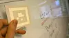 När det nu gäller att spara informationen du eller någon annan skrivit på en whiteboard är principen alltså densamma eftersom man fäster fyra små magnetiska brickor i var och en av hörnen på den whiteboard vars text ska förevigas.
