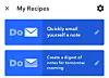 Väl inne i appen får du en snabbkurs i hur du skickar ett mejl till dig själv genom appen. Vill du skapa egna recept går det, men det ffinns färdiga recept finns att välja mellan för att komma igång.