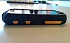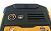 Som vanligt med tåliga telefoner blir vi osedvanligt klumpiga när vi använder dem och trots telefonens gummerade ytor har vi ”råkat” tappa den i såväl ett fyllt handfat som ned för en trappa. Hittills har det inte påverkat luren synbart någonstans dock, så initialt tror vi på de tåliga egenskaperna som är telefonens huvudnummer. Hörlur och laddning göms bakom en lucka i botten som är ganska pillig att få dit på ett bra sätt, medan en gummiflärp i toppen döljer ett antennuttag (det hör inte till vanligheterna numera). Antennuttaget används så vitt vi kunnat se enbart för komradion däremot.