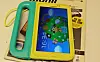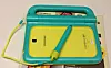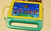 Utöver en skrikgul färg medföljer en penna och ett stycke turkosgult skal. Skalet i fråga ger en hel del stöttålighet, vilket kan vara vettigt för en barninriktad platta, samtidigt som den givetvis gör att det hela ser ut som en Fisher Price-leksak. Skalet har även ett inbyggt handtag som kan vinklas för att agera ställ.