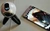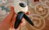Minneskort och utbytbart batteri Det är en smidig liten boll med ett eget litet stativ som följer med. Stativet är trebent så du kan placera bollen på en plan yta, eller så kan du fälla ihop benen och får då ett handtag som du kan hålla kameran i när du tar bild eller filmar. Bollen innehåller bland annat ett utbytbart batteri och minneskortplats. En hel del av funktionen kommer dock först när du kopplar Gear 360 till din mobiltelefon. Idag fungerar det bara med Samsungs mobiler, men när vi frågar får vi veta att det finns planer både på att stödja andra tillverkares Android-telefoner och Apples Ios framöver.