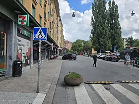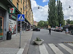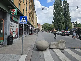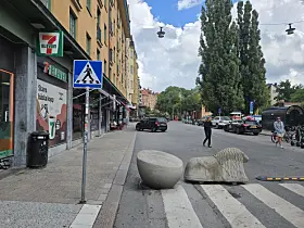 I exemplet nedan så har vi en bild som visar utsikten mot Gröna Lund på Djurgården i Stockholm. Vyn störs dock av ett par byggbaracker som vi gärna vill ha bort.
