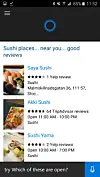 Men en snabb testkörning här på redaktionen gick utan några större problem. På vissa telefonmodeller kraschar dock appen och Cortana tolkade en gång “where is the best sushi place in Stockholm” till “where is the best sushi place in stock home” men visade ändå resultaten för bäst recenserade sushin i närområdet.