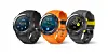 Laddningen sker fortfarande via kontakter på baksidan, Som vi ser finns klockan också i minst tre färger, svart, orange och... plastgolvsprickig? Vi har inga prisuppgifter på Huawei Watch 2 ännu.