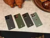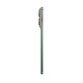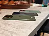 Motorola fokuserar mycket på färg och material som sticker ut i mängden och det gäller även denna telefon Motorola Edge 70. Telefonen kommer i tre olika färger, en gråaktig och två oliak gröna nyanser, alla tre modeller med kontrasterande accentfärger runt kamerorna. Materialet i telefonen, kan vi konstatera efter att ha känt på de olika varianterna är matt och gummiaktigt så de ligger säkert och bra i handen.