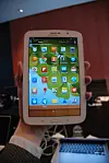 Material och format är annars så väldigt likt Samsung under den senaste tiden, med vit plast och grå metallimitation på sidorna. Vi har ju sett många både plattor och telefoner som bygger vidare på designspråket från Galaxy S3 på detta sätt.