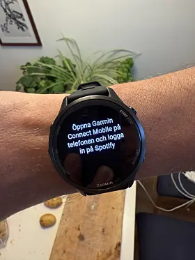 När jag ska ställa in Spotify får jag i klockan upp ett meddelande som säger att jag ska logga in på Spotify i telefonens Garmin Connect-app. Men varje gång jag startar den och frenetiskt letar så finns ingen inloggning där. Förrän plötsligt på femte försöket. Då dyker en popup-ruta upp från ingenstans och låter mig logga in. Liknande upplevelse har jag när jag ställer in betalningar. Fungerar inte, försök igen senare. Kanske gjorde jag något fel när jag matade in kortnumret, kanske var det problem med kontakten med banken, utan förklaring vet jag inte. Jag vet bara att det fungerade på tredje försöket.
