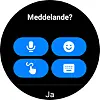Utöver att läsa aviseringar kan du direkt från klockan även svara. Det finns förvalda fraser du kan välja bland, men vilka de är och exakt hur det fungerar skiljer sig åt beroende på app. Utöver det kan du använda röstigenkänning (inte på svenska dock), emojies, ett pyttelitet tangentbord eller rita bokstav för bokstav på skärmen. Inget fungerar särskilt bra, så en röstigenkänning på svenska är ett högt önskat tillägg här.